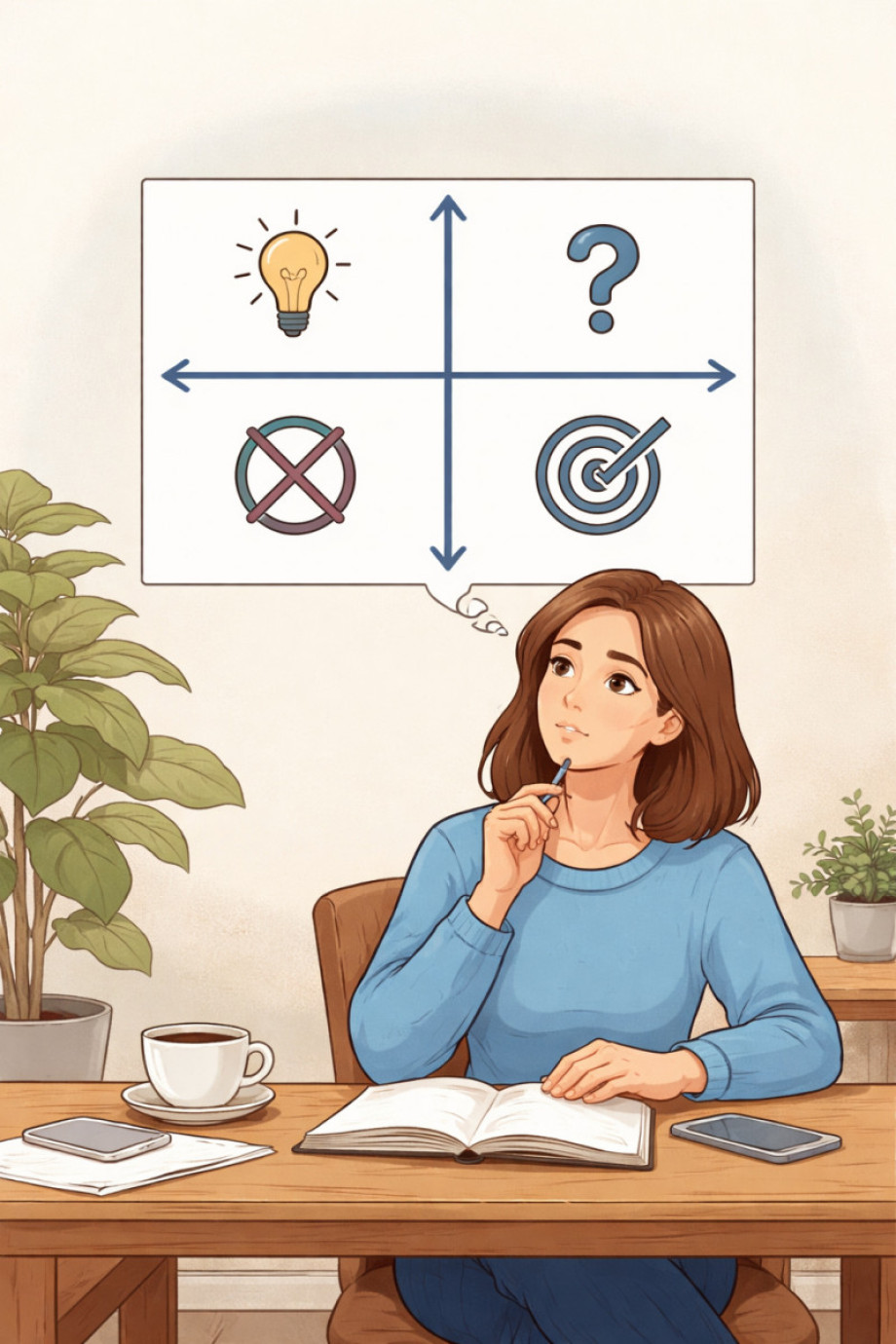 «Квадрат Декарта» — это инструмент структурированного анализа выбора. Он помогает выйти из эмоционального хаоса и включить рациональное мышление, не подавляя при этом чувства.